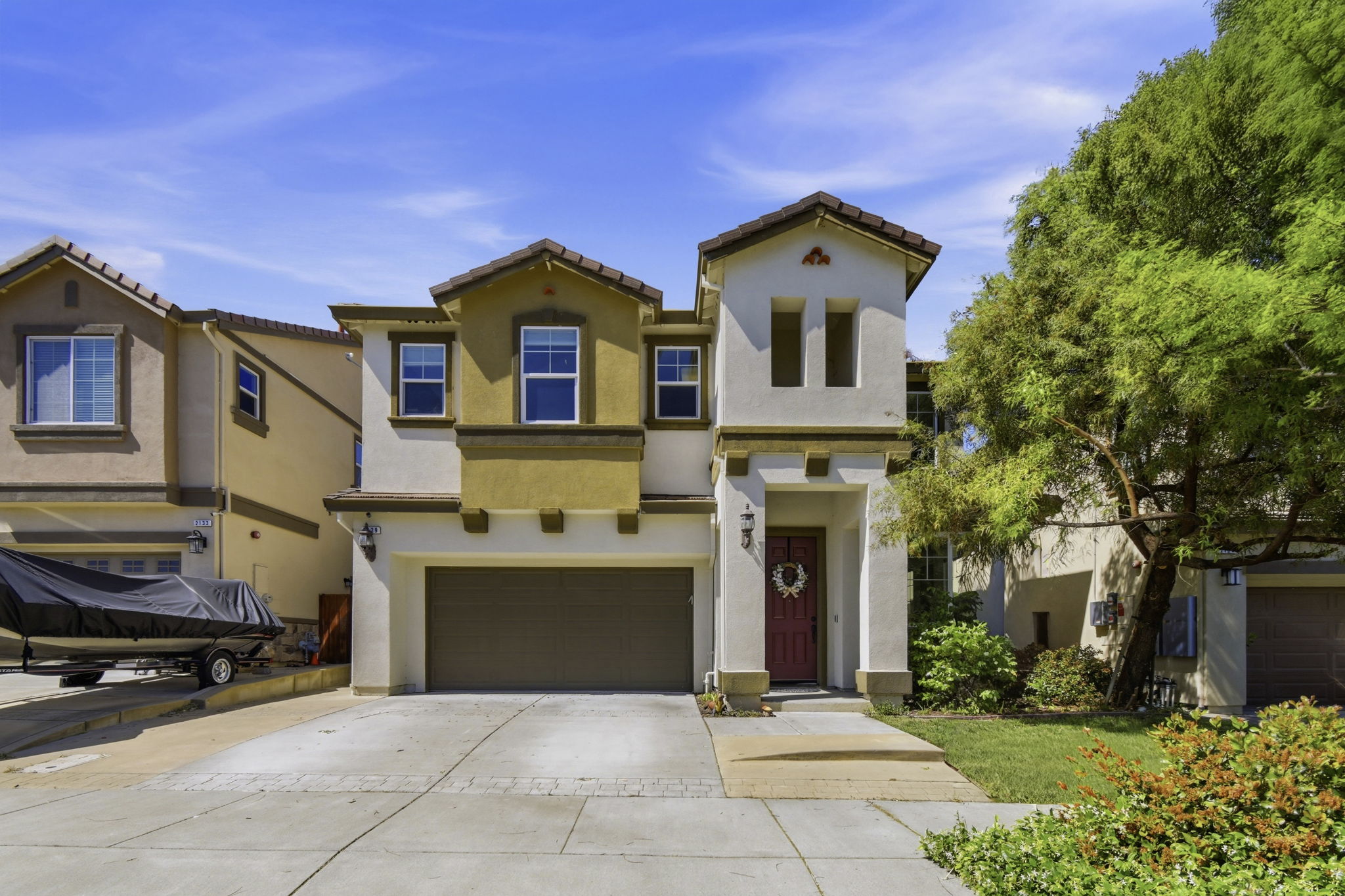 This gorgeous 5-bedroom, 3.5-bathroom home offers 3,257 sq. ft. of bright, open living space with stylish, contemporary finishes throughout.A few of the highlights of the home include double primary suites one on first floor and second floor, an elegant spiral staircase, and distinct 9-foot ceilings. A thoughtfully designed gourmet kitchen overlooks the Great Room and is well-equipped with granite countertops, a spacious pantry, a convenient breakfast nook, newer stainless steel appliances and much more! Upstairs, the generous size primary suite features a walk-in closet, an upgraded frameless glass shower, and a separate soaking tub for a spa-like experience. Three additional spacious bedrooms, a loft, laundry room, and a large hall bathroom for those crazy weekday mornings! Downstairs, the junior suite includes a full bathroom, a walk-in closet, and a rare custom upgrade—a private patio slider providing direct access to the backyard, a unique feature not commonly found in other Symphony homes. Thoughtfully designed with abundant storage, including additional space in the laundry room, with luxury vinyl flooring throughout and new custom blinds including remote-controlled ones in the family room. The backyard is an entertainer’s dream, showcasing a stamped concrete patio and a fully equipped outdoor kitchen with a custom-height awning, plumbed gas BBQ, mini fridge, and under-counter bar lighting. Enjoy evenings around the gas fire feature (propane) while listening to music through outdoor speakers with auxiliary connectivity. A full-width deck with a drainage system adds additional functional space, while the upper-tier garden includes raised beds with an integrated drip irrigation system and several fruit trees (Avocado, Apple, Lime, and Kumquat). Automatic sprinklers in the front and back yards. The owned solar panels add both efficiency and value to this exceptional property. A commuter's paradise with its close proximity to I-680, I-80, and minutes to the Benicia bridge. Don’t miss your chance to own this exceptional home!
